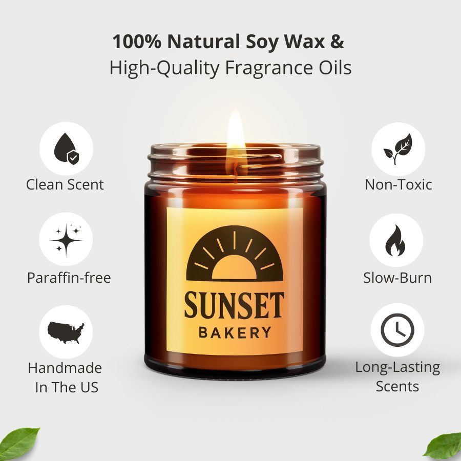 - Vegan & Non-Toxic: Made with 100% natural soy wax and high-quality fragrance oils, free from paraffin, phthalates, petroleum, chemicals, and preservatives.