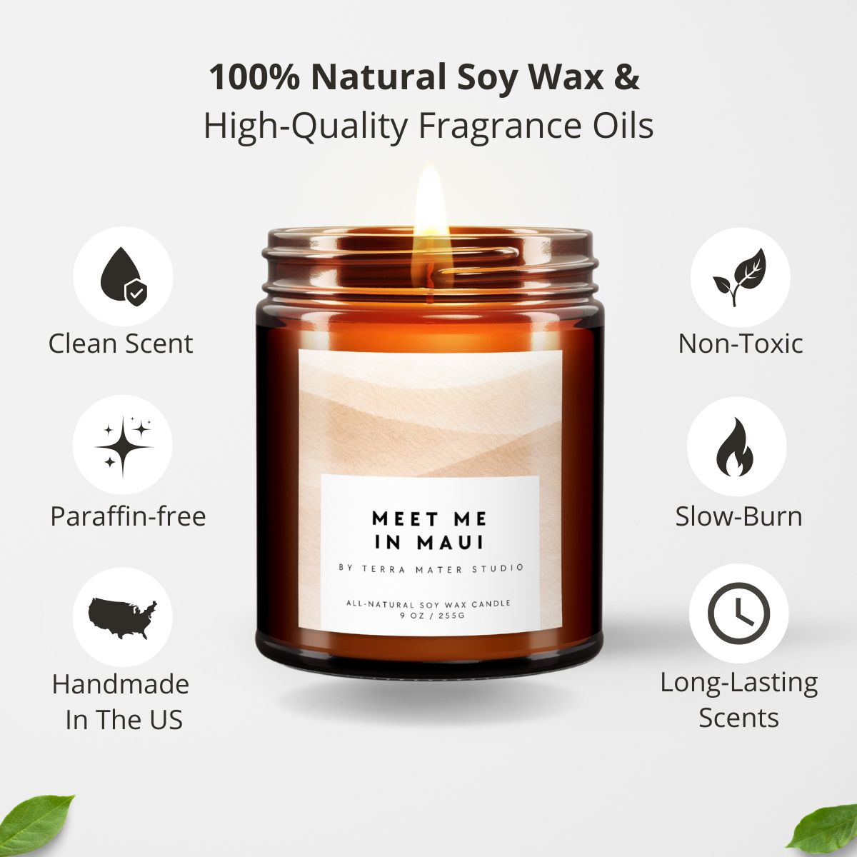 ✔ Vegan & Non-Toxic: Made with 100% natural soy wax and high-quality fragrance oils, free from paraffin, phthalates, petroleum, chemicals, and preservatives.