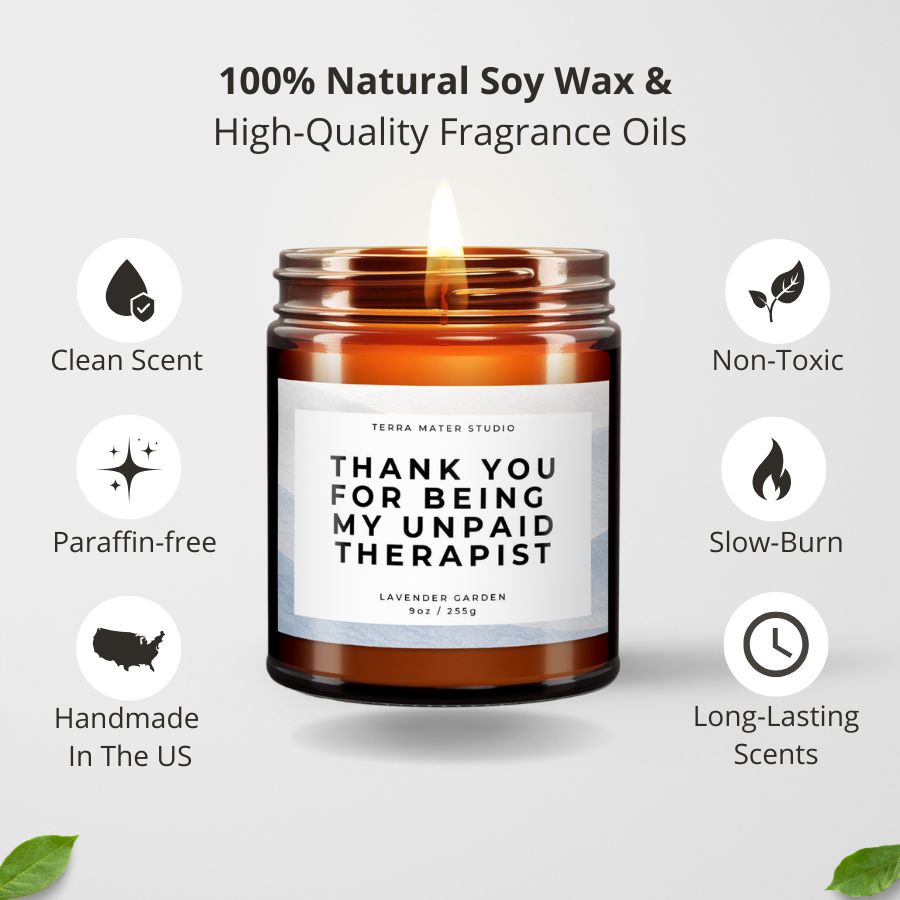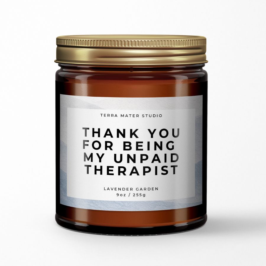 Thank You For Being My Unpaid Therapist All-Natural Scented Candle.